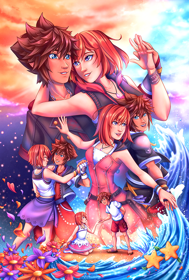 Illustration created for a charity fan book centered around the characters of Sora and Kairi from the video Game series